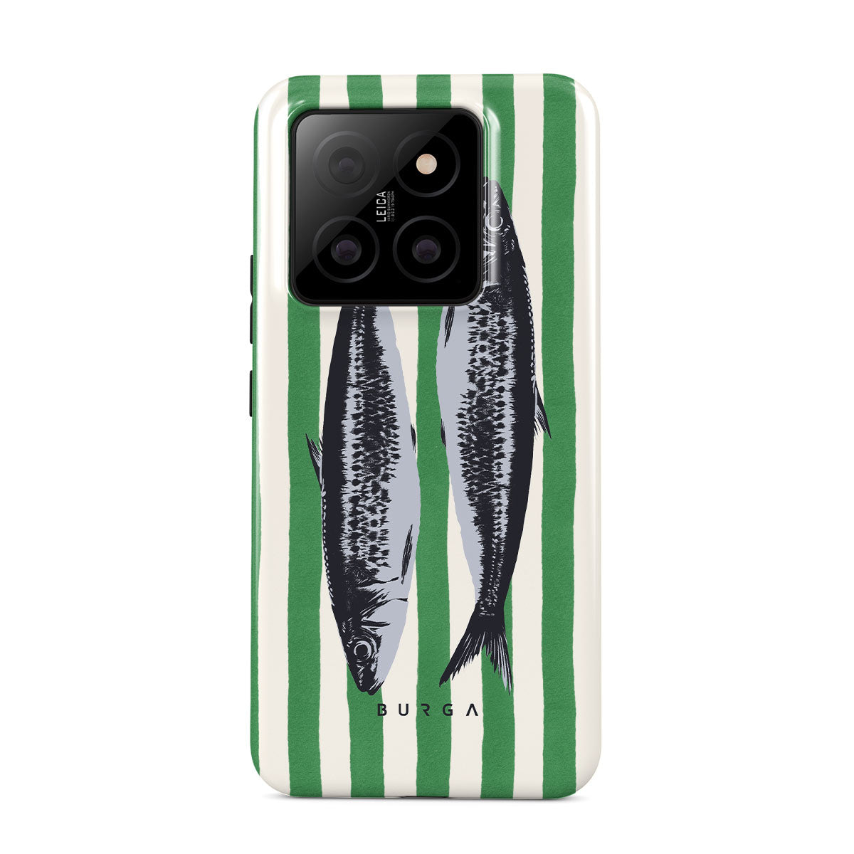 Główne elementy projektu: Sardynki, zielone paski, motywy oceaniczne.