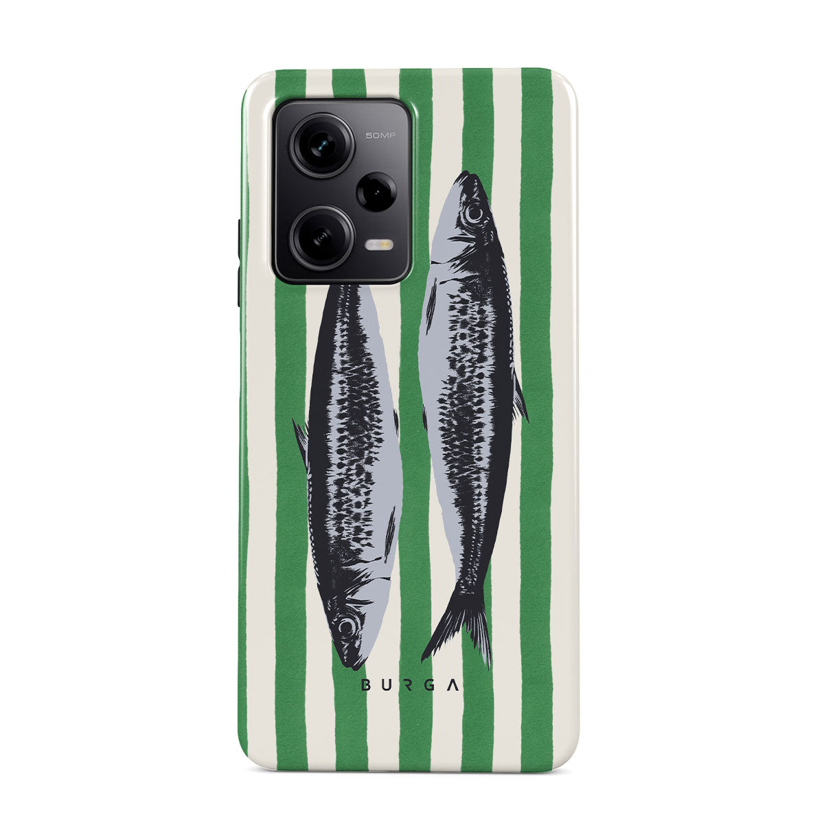 Główne elementy projektu: Sardynki, zielone paski, motywy oceaniczne.