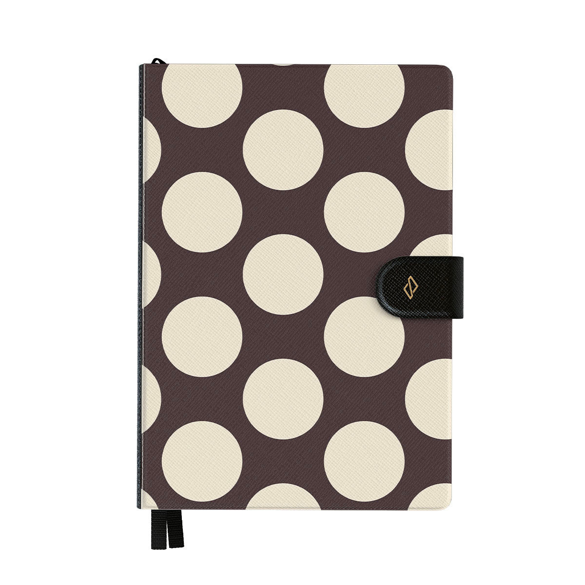 Wykończony piękną, wegańską skórą Saffiano, zabezpieczony eleganckim zapięciem magnetycznym i wystarczająco trwały, by poradzić sobie z rozlaną kawą oraz momentami, w których chciałoby się powiedzieć „ups”.