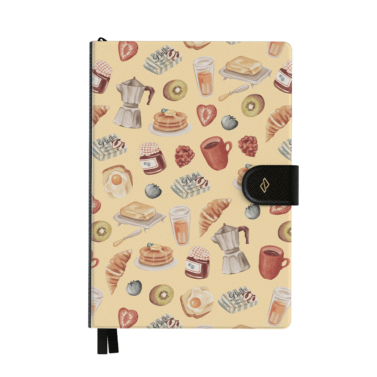 Wykończony piękną, wegańską skórą Saffiano, zabezpieczony eleganckim zapięciem magnetycznym i wystarczająco trwały, by poradzić sobie z rozlaną kawą oraz momentami, w których chciałoby się powiedzieć „ups”.