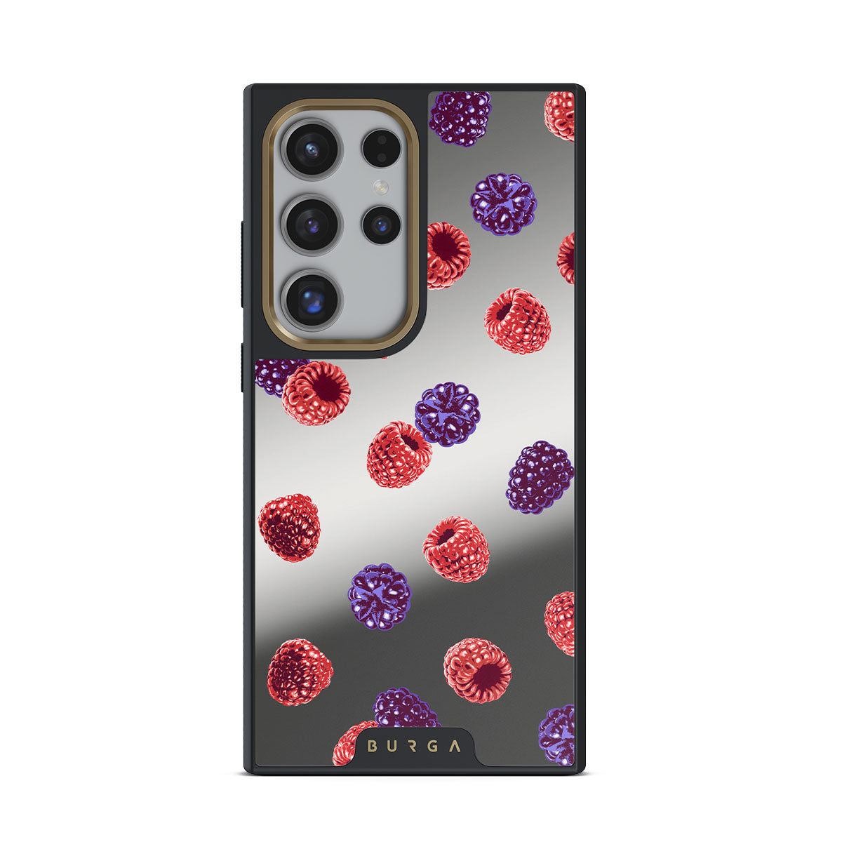 Główne elementy projektu: jagody, maliny, jeżyny, owoce, lustro