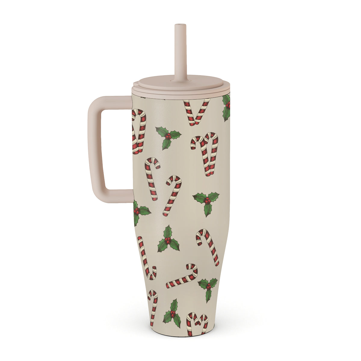 Główne elementy projektu: laski cukrowe, ostrokrzew, kolor zielony, kolor biały, świąteczny wzór