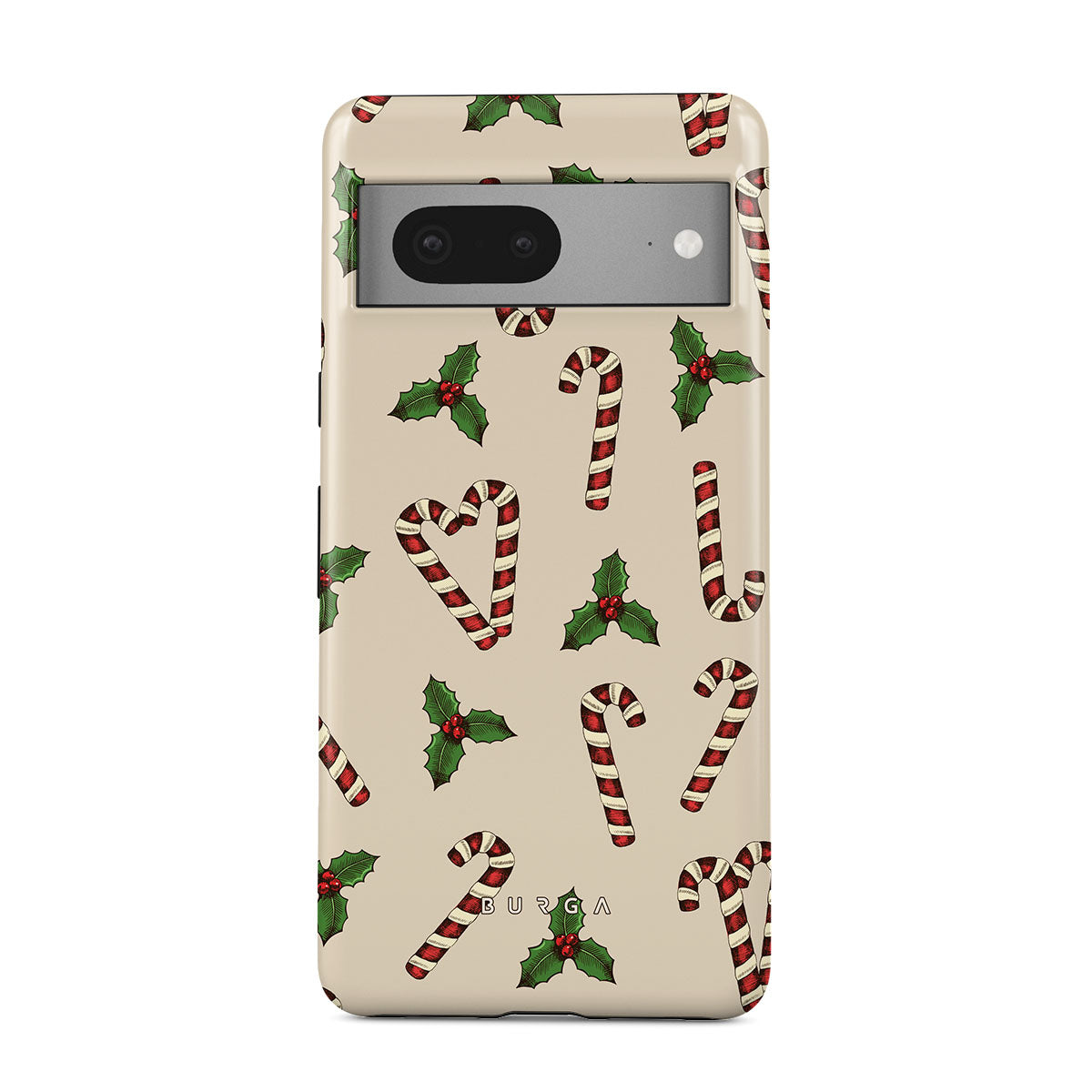 Główne elementy projektu: laski cukrowe, ostrokrzew, kolor zielony, kolor biały, świąteczny wzór