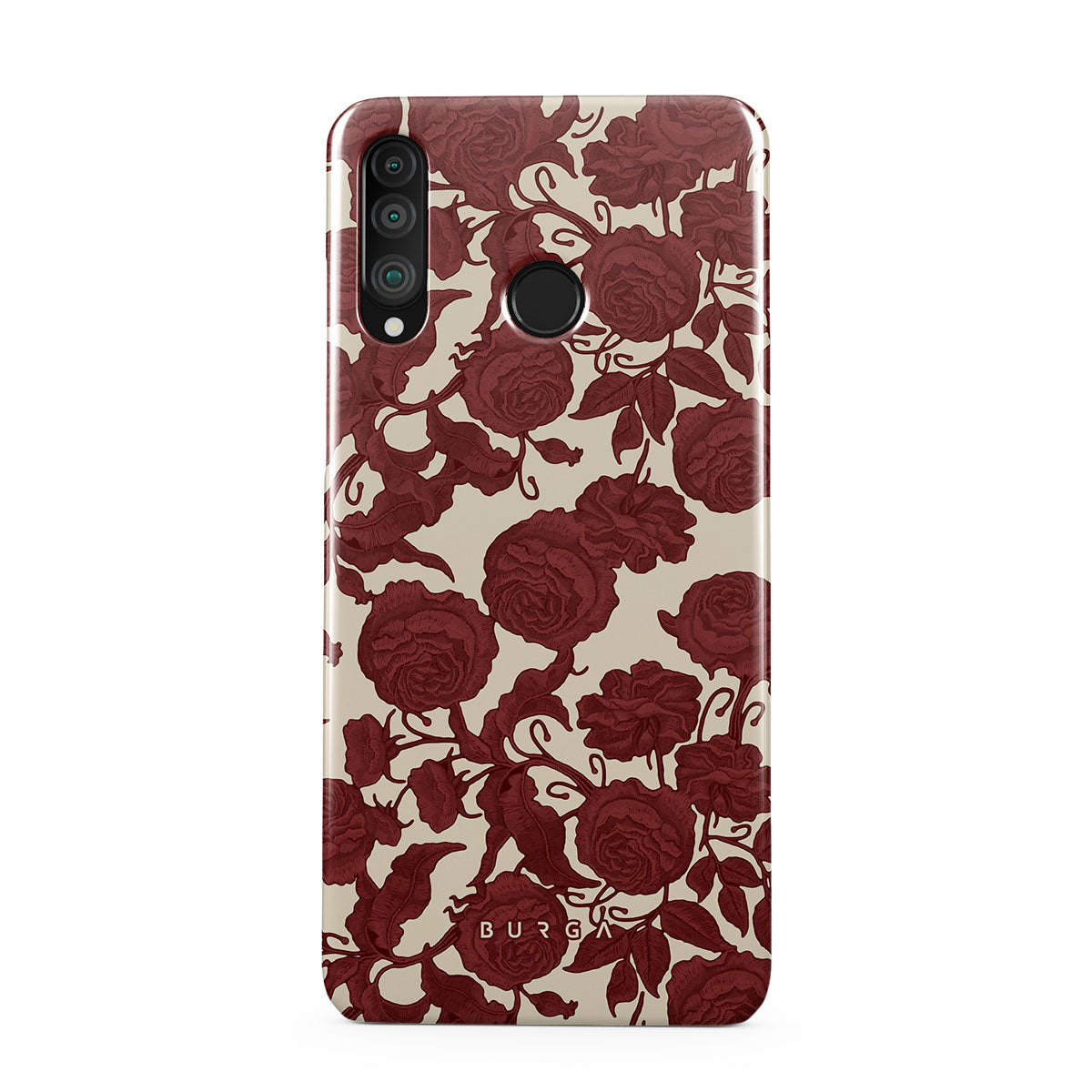 Główne elementy projektu: ciemnoczerwone róże, misterny wzór kwiatowy, wzór vintage.