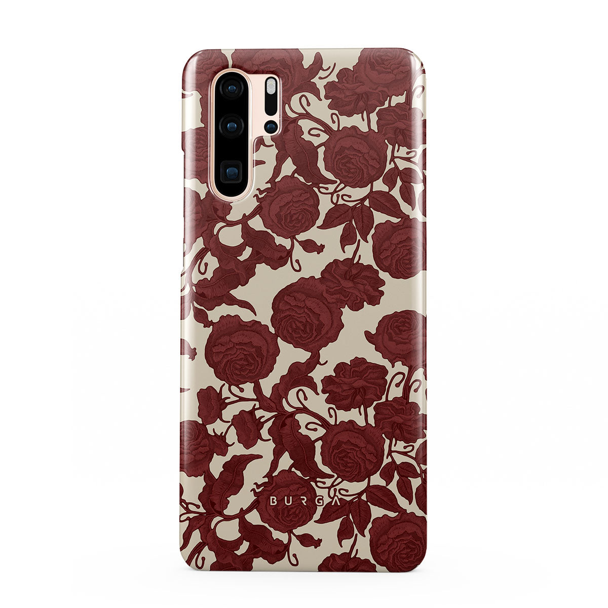 Główne elementy projektu: ciemnoczerwone róże, misterny wzór kwiatowy, wzór vintage.