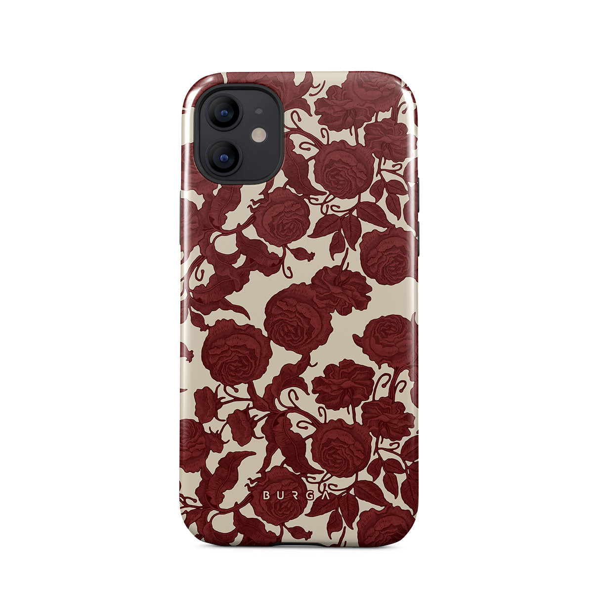 Główne elementy projektu: ciemnoczerwone róże, misterny wzór kwiatowy, wzór vintage.