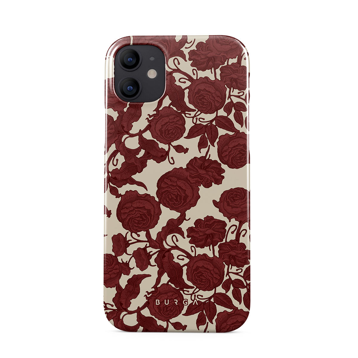 Główne elementy projektu: ciemnoczerwone róże, misterny wzór kwiatowy, wzór vintage.