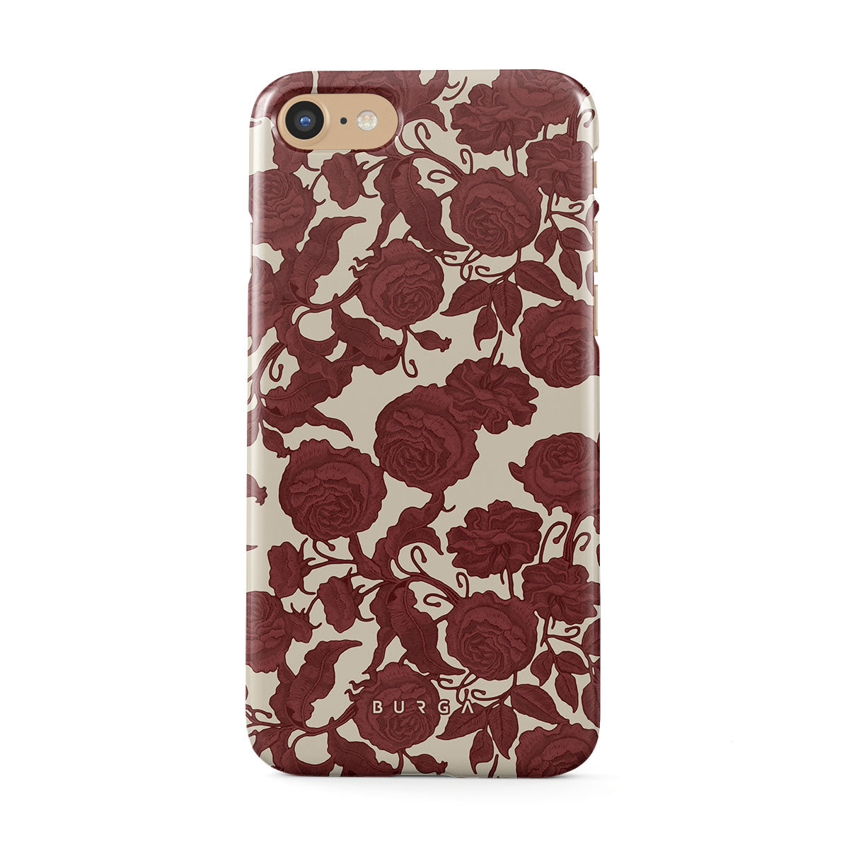 Główne elementy projektu: ciemnoczerwone róże, misterny wzór kwiatowy, wzór vintage.