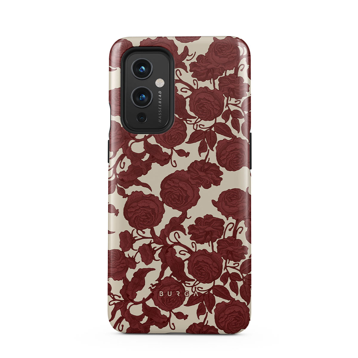 Główne elementy projektu: ciemnoczerwone róże, misterny wzór kwiatowy, wzór vintage.