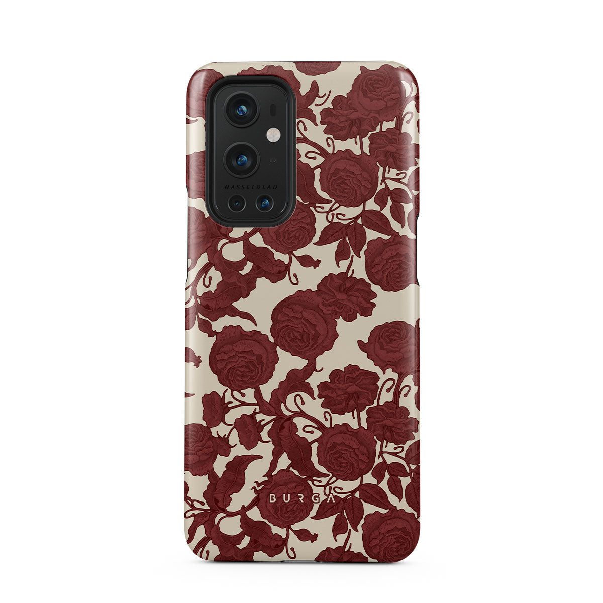 Główne elementy projektu: ciemnoczerwone róże, misterny wzór kwiatowy, wzór vintage.