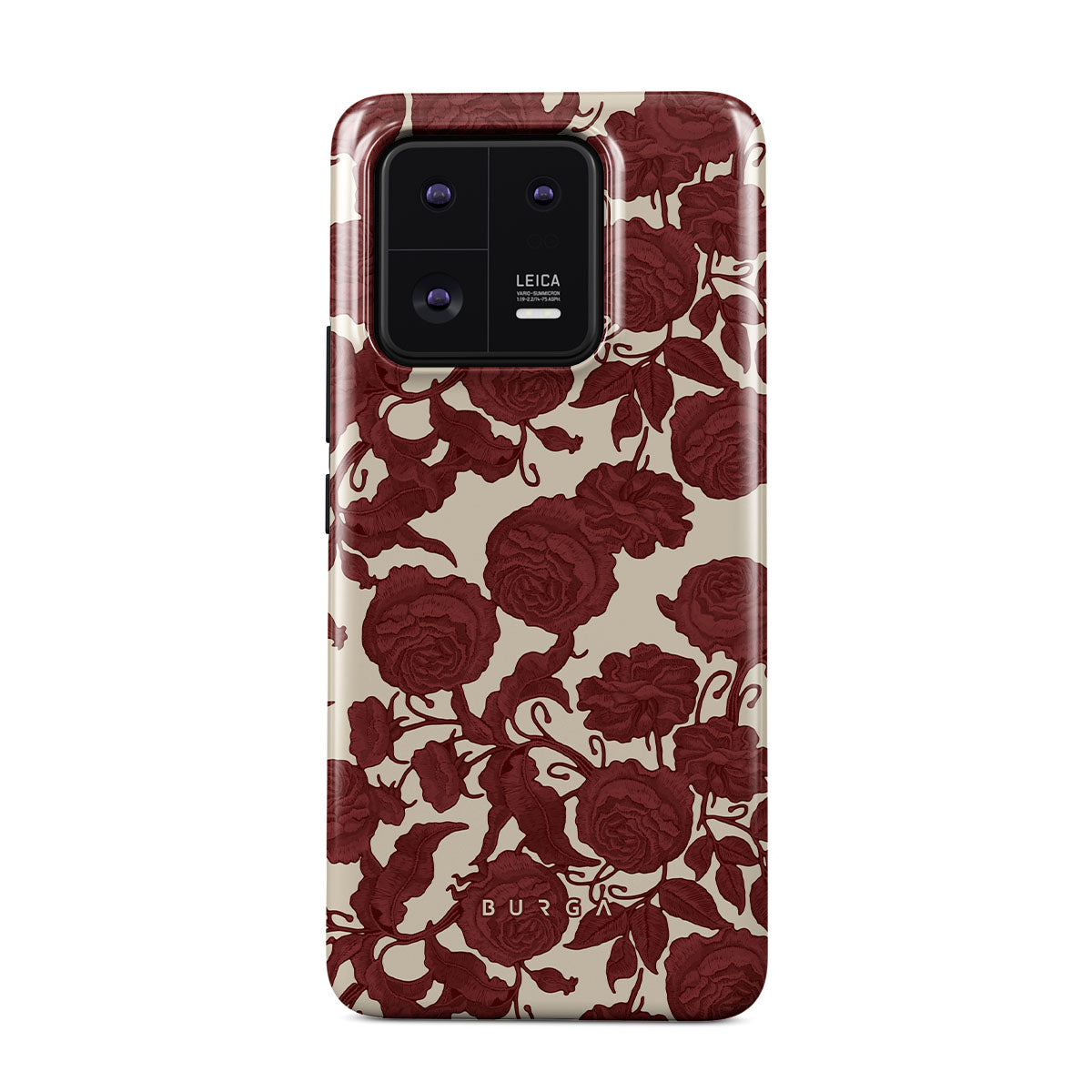 Główne elementy projektu: ciemnoczerwone róże, misterny wzór kwiatowy, wzór vintage.