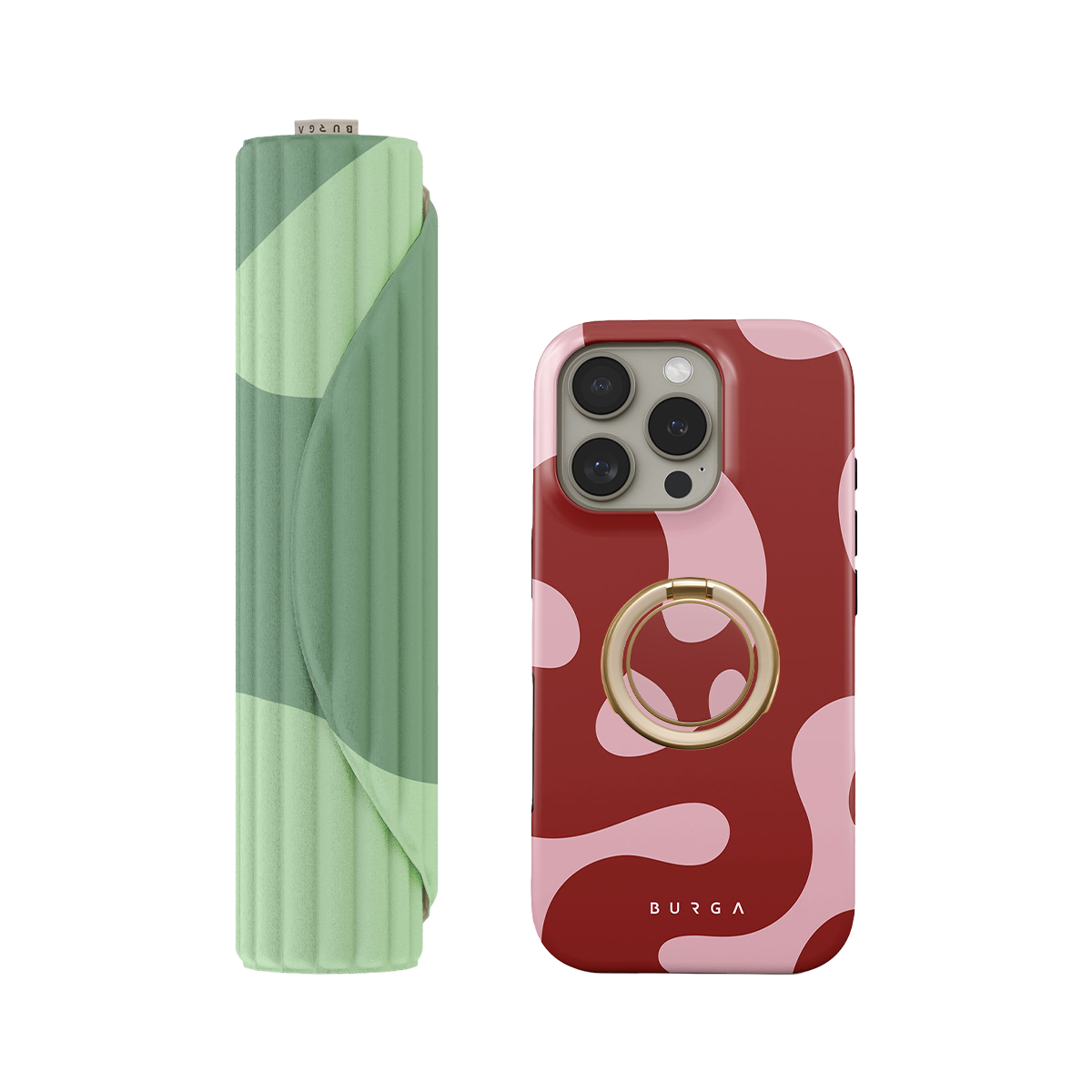 Twoje niezawodne trio. Etui chroni telefon. Mata daje Ci uziemienie. Uchwyt na palec podtrzymuje ekran i nie ślizga się, nawet gdy dłonie są spocone. Smukły. Miękki. Łatwy do noszenia, jeszcze łatwiejszy do pokochania. Na spokojne poranki, intensywne ćwiczenia i tę energię: „Dam radę”. Zestaw Flow zawiera niezbędniki do codziennych ćwiczeń rozciągających: