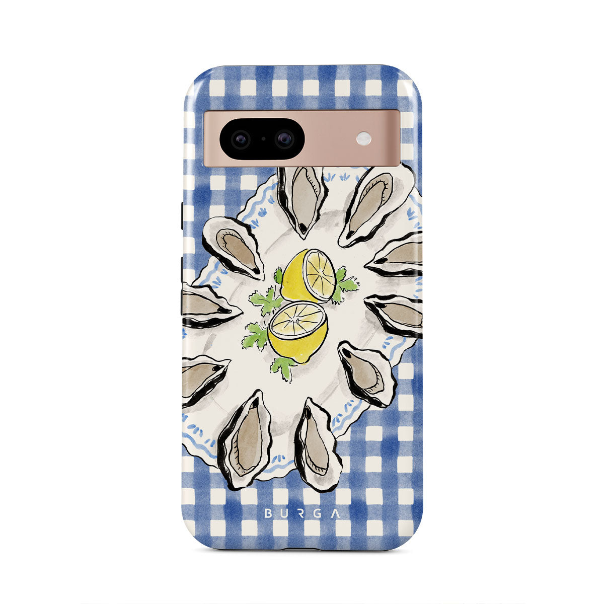 Główne elementy projektu: Ostrygi, cytryny, niebieski w kratkę, świeże elementy nadmorskie, delikatne pastelowe odcienie.