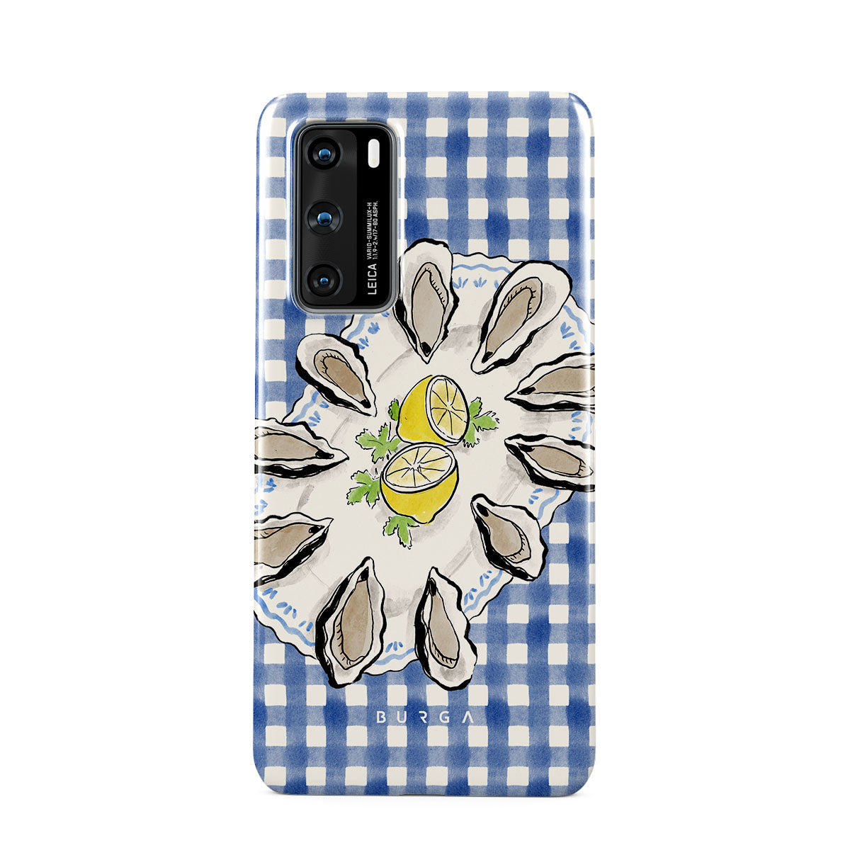 Główne elementy projektu: Ostrygi, cytryny, niebieski w kratkę, świeże elementy nadmorskie, delikatne pastelowe odcienie.