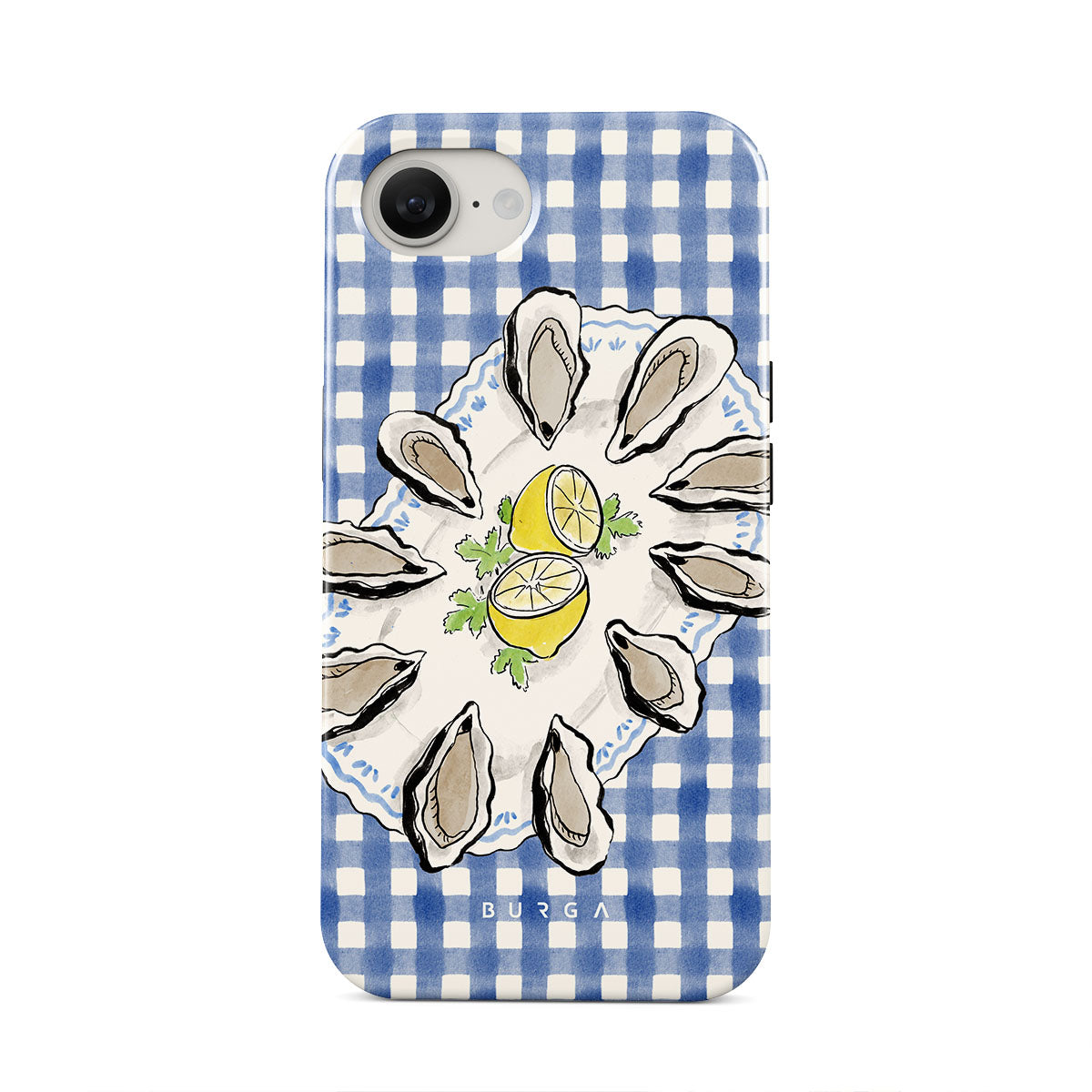 Główne elementy projektu: Ostrygi, cytryny, niebieski w kratkę, świeże elementy nadmorskie, delikatne pastelowe odcienie.