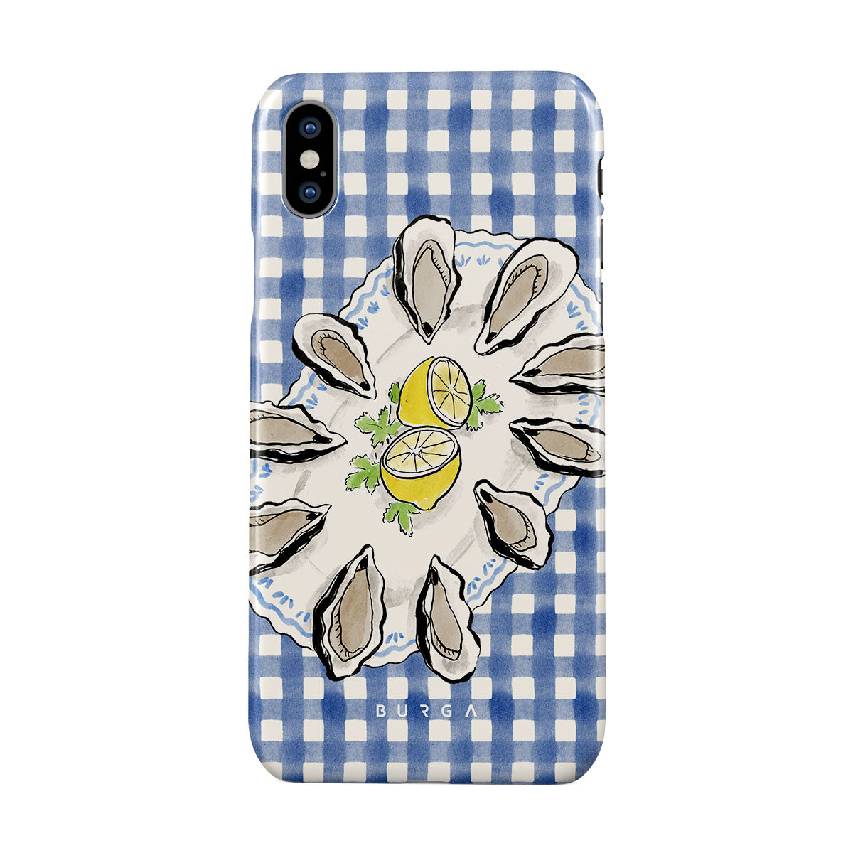 Główne elementy projektu: Ostrygi, cytryny, niebieski w kratkę, świeże elementy nadmorskie, delikatne pastelowe odcienie.