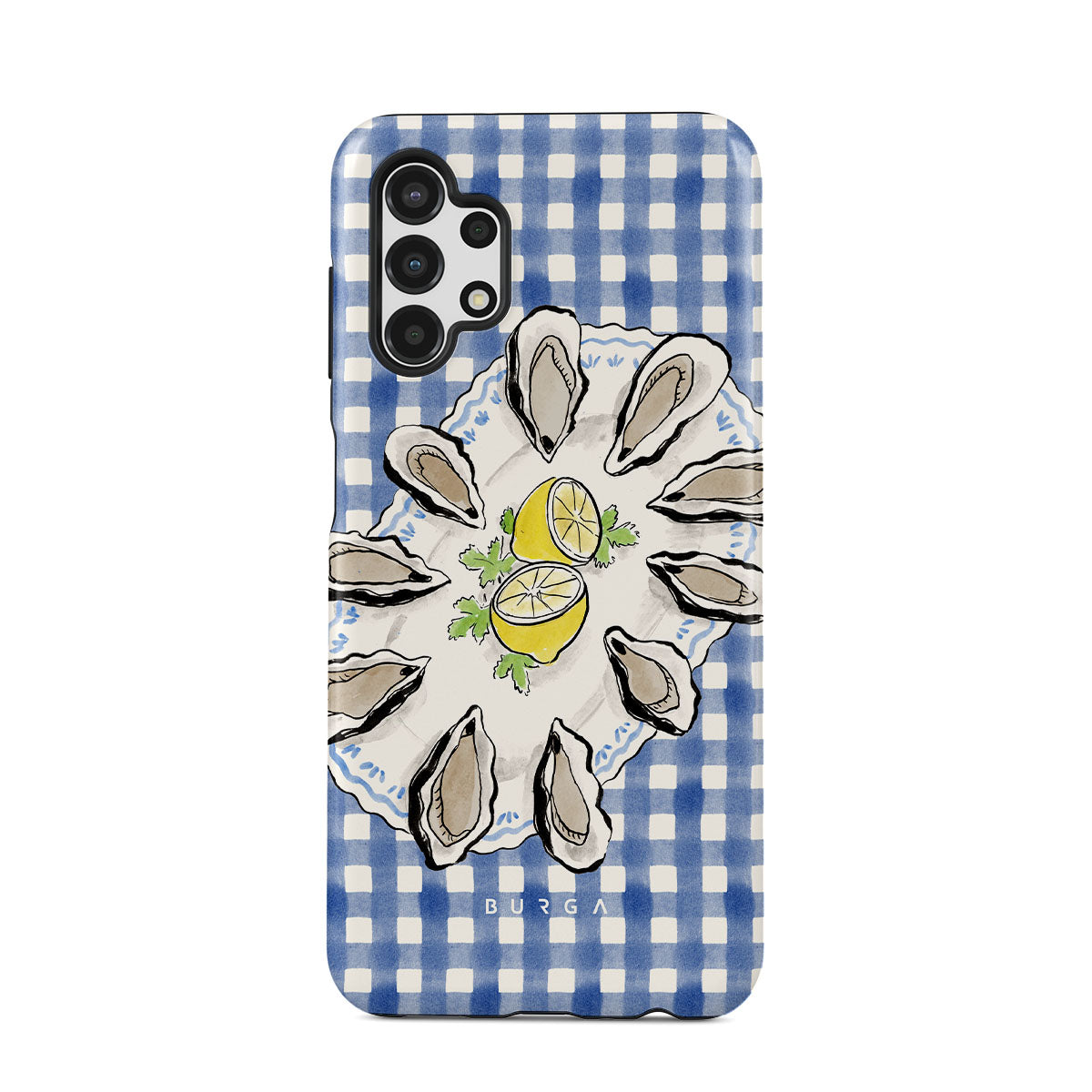 Główne elementy projektu: Ostrygi, cytryny, niebieski w kratkę, świeże elementy nadmorskie, delikatne pastelowe odcienie.