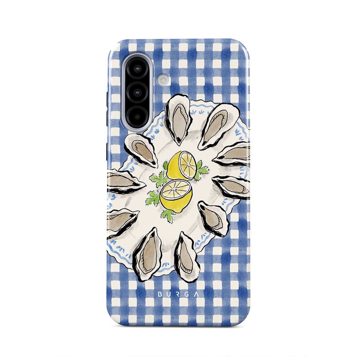 Główne elementy projektu: Ostrygi, cytryny, niebieski w kratkę, świeże elementy nadmorskie, delikatne pastelowe odcienie.