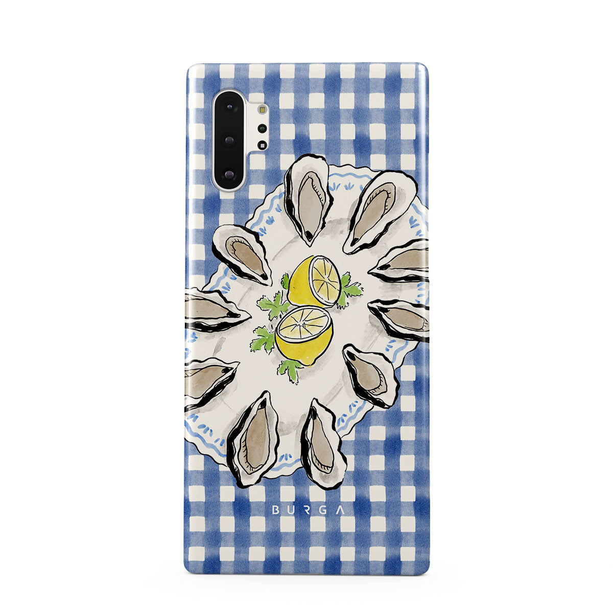 Główne elementy projektu: Ostrygi, cytryny, niebieski w kratkę, świeże elementy nadmorskie, delikatne pastelowe odcienie.