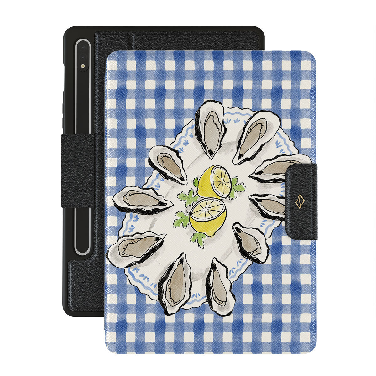 Główne elementy projektu: Ostrygi, cytryny, niebieski w kratkę, świeże elementy nadmorskie, delikatne pastelowe odcienie.