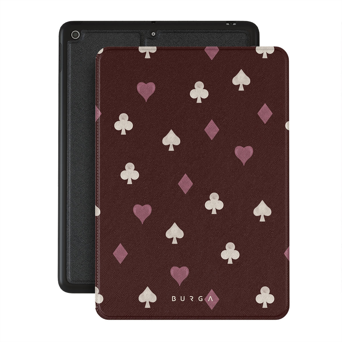 Główne elementy projektu: symbole kart, serca, piki, karo, trefle, bordowe tło
