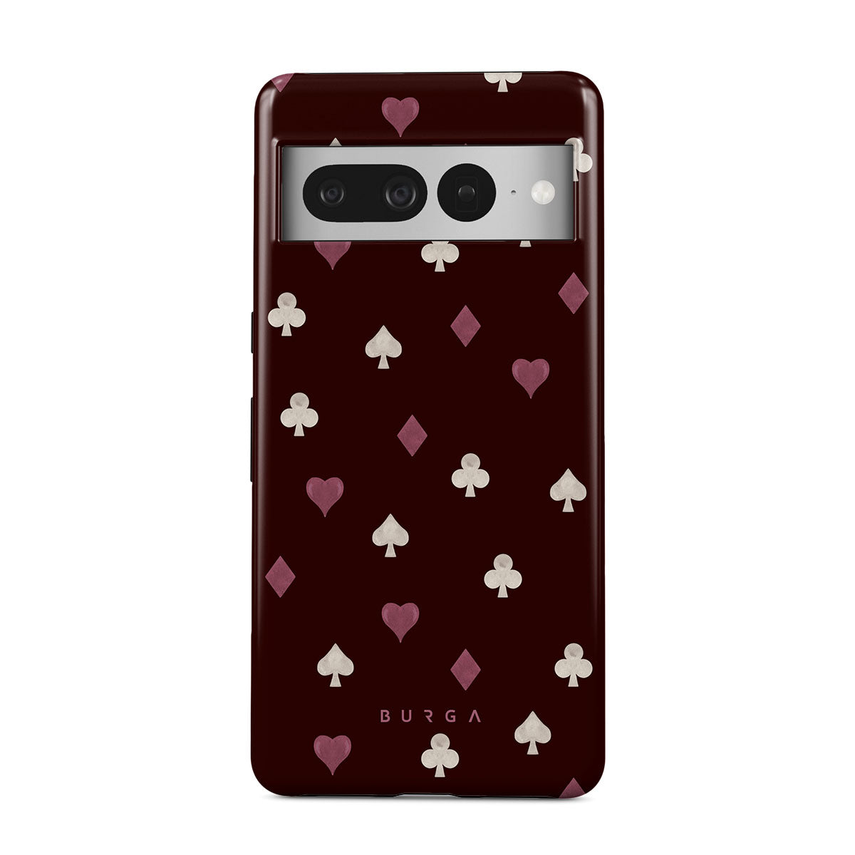 Główne elementy projektu: symbole kart, serca, piki, karo, trefle, bordowe tło