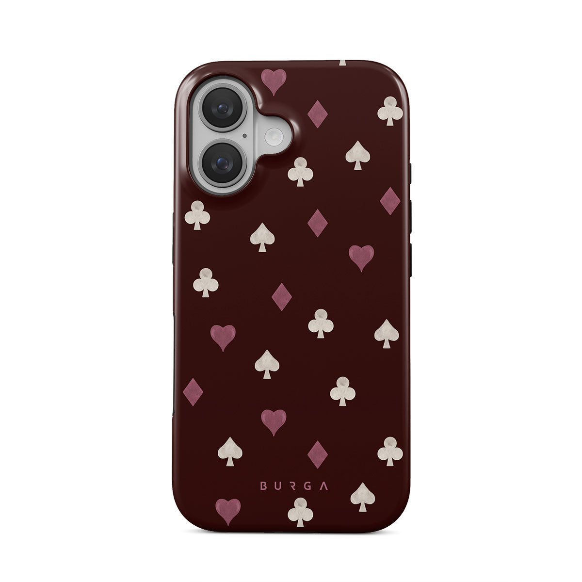 Główne elementy projektu: symbole kart, serca, piki, karo, trefle, bordowe tło
