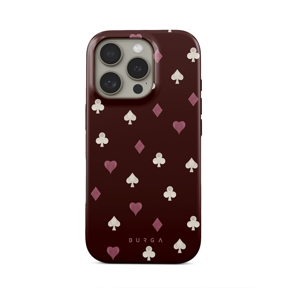 Główne elementy projektu: symbole kart, serca, piki, karo, trefle, bordowe tło
