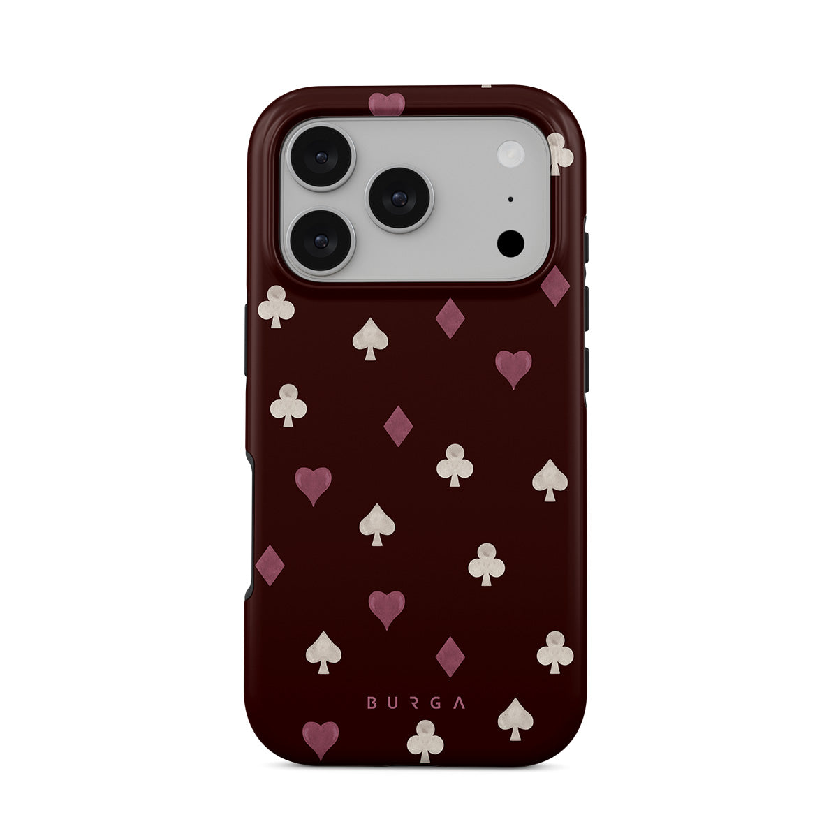 Główne elementy projektu: symbole kart, serca, piki, karo, trefle, bordowe tło