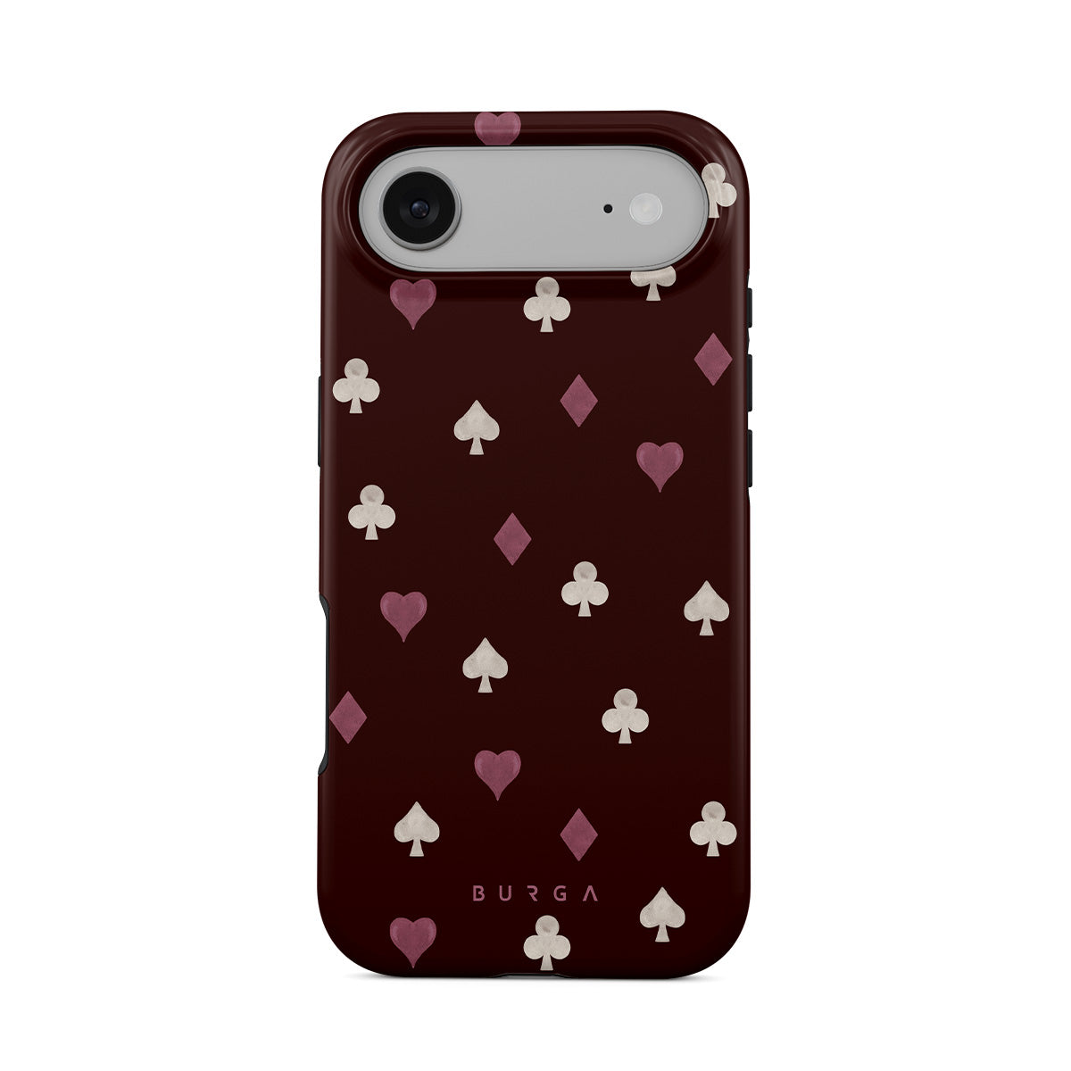 Główne elementy projektu: symbole kart, serca, piki, karo, trefle, bordowe tło