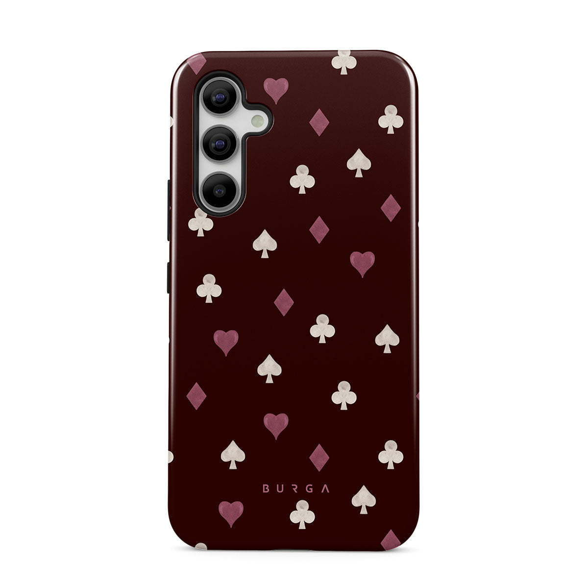 Główne elementy projektu: symbole kart, serca, piki, karo, trefle, bordowe tło