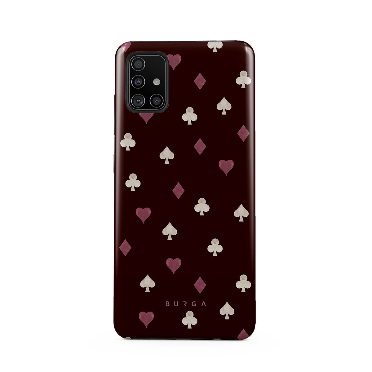 Główne elementy projektu: symbole kart, serca, piki, karo, trefle, bordowe tło