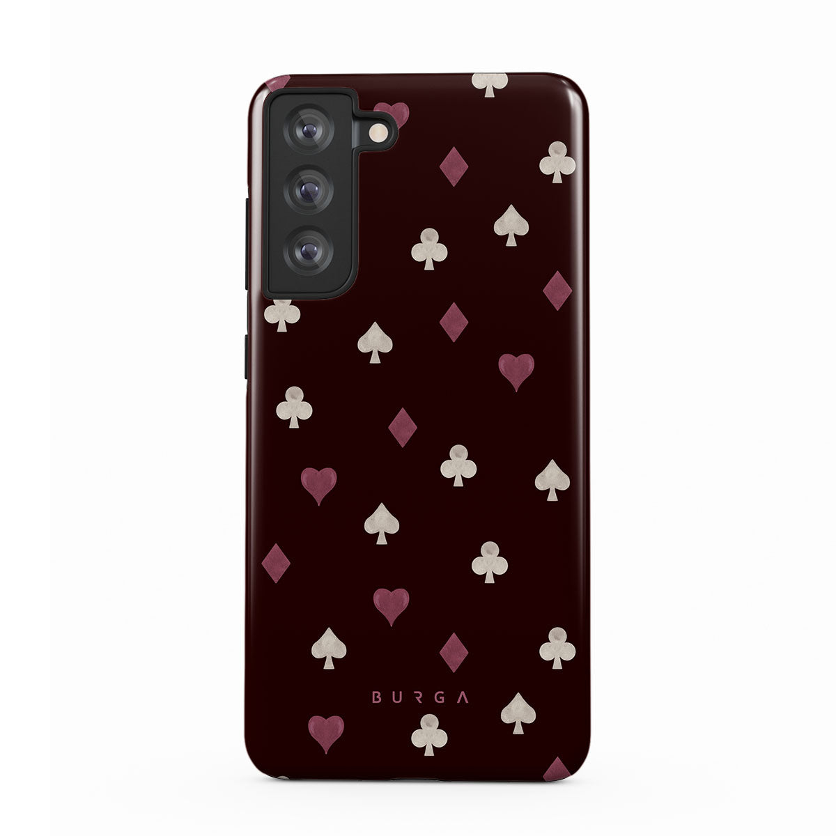 Główne elementy projektu: symbole kart, serca, piki, karo, trefle, bordowe tło