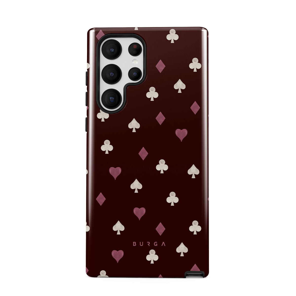 Główne elementy projektu: symbole kart, serca, piki, karo, trefle, bordowe tło