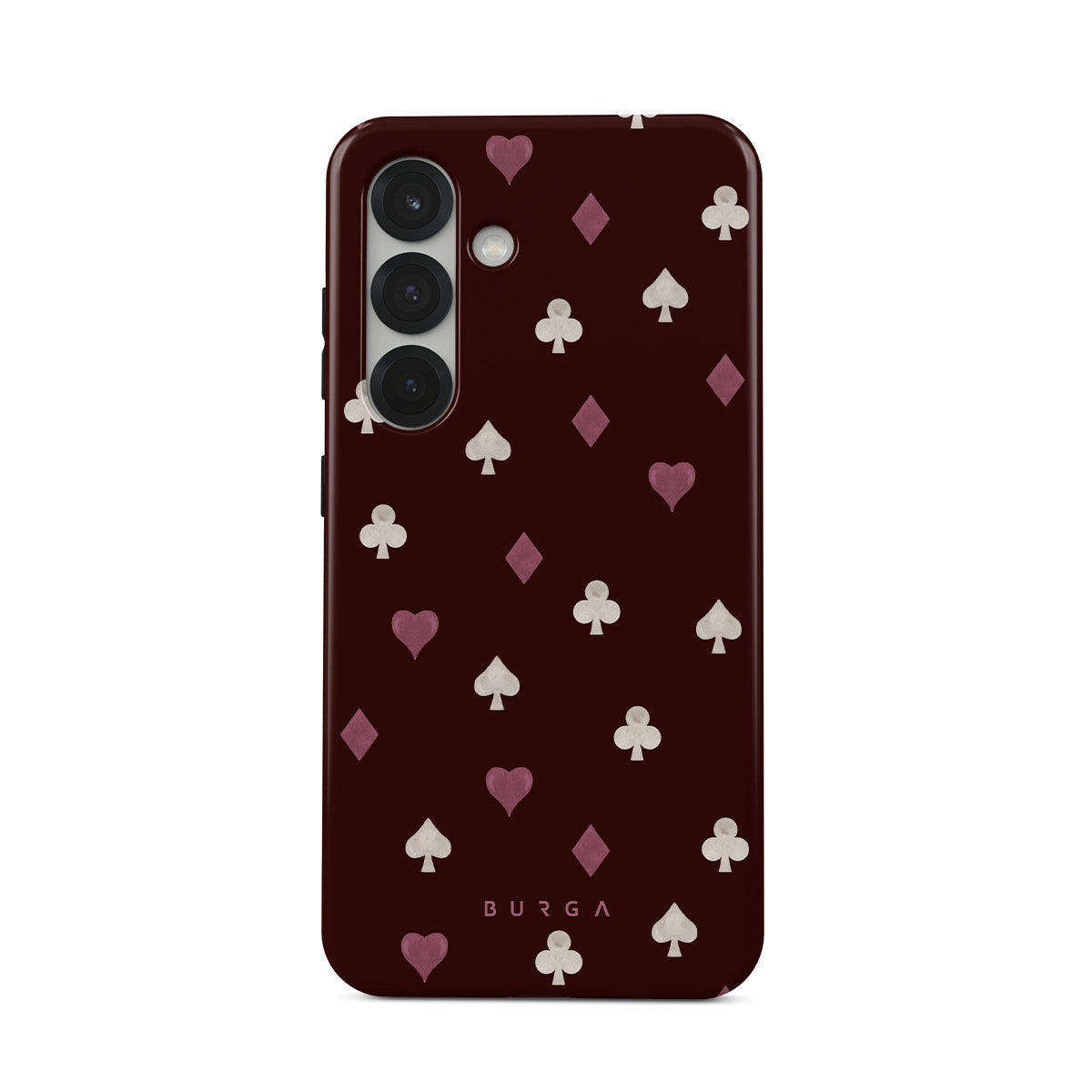 Główne elementy projektu: symbole kart, serca, piki, karo, trefle, bordowe tło