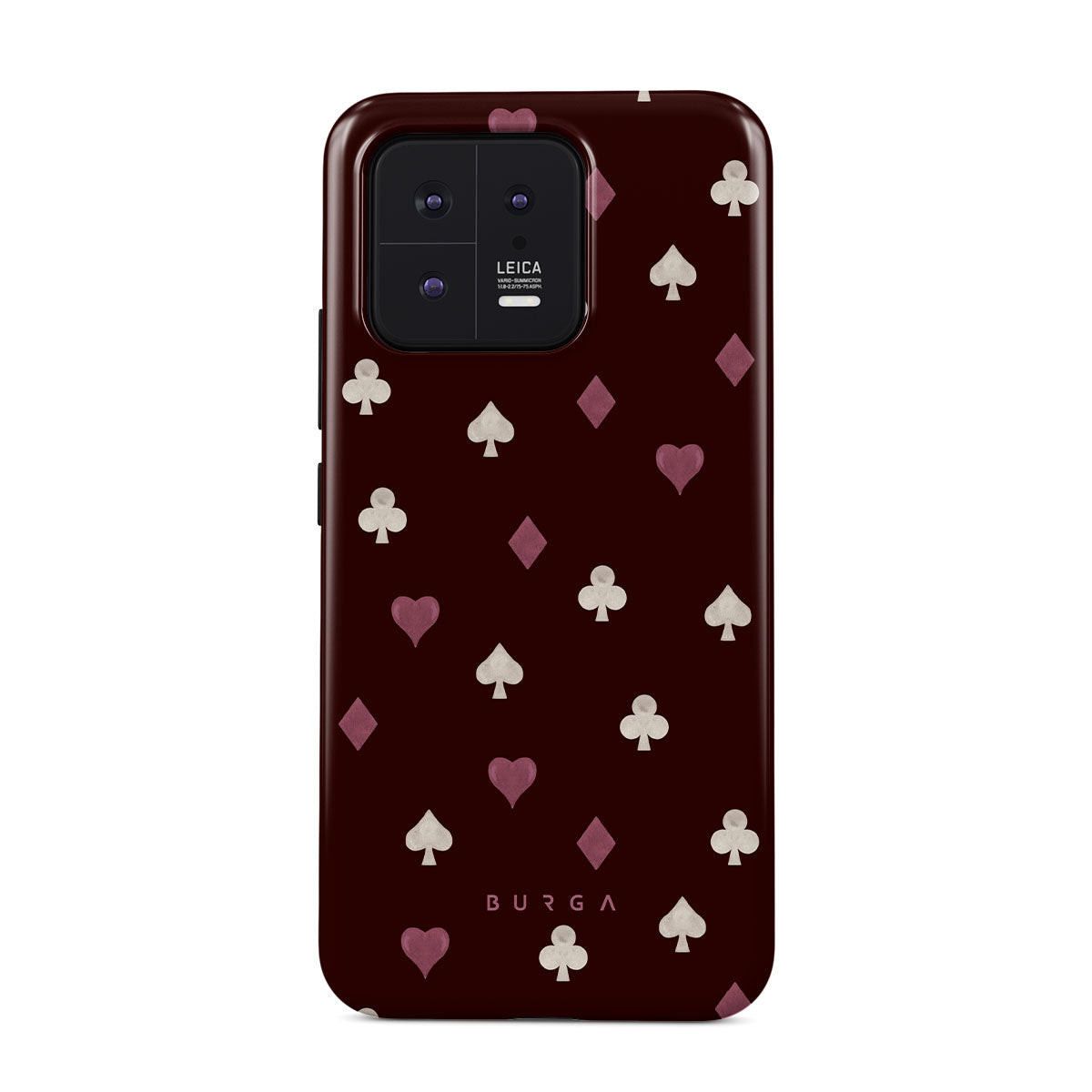 Główne elementy projektu: symbole kart, serca, piki, karo, trefle, bordowe tło