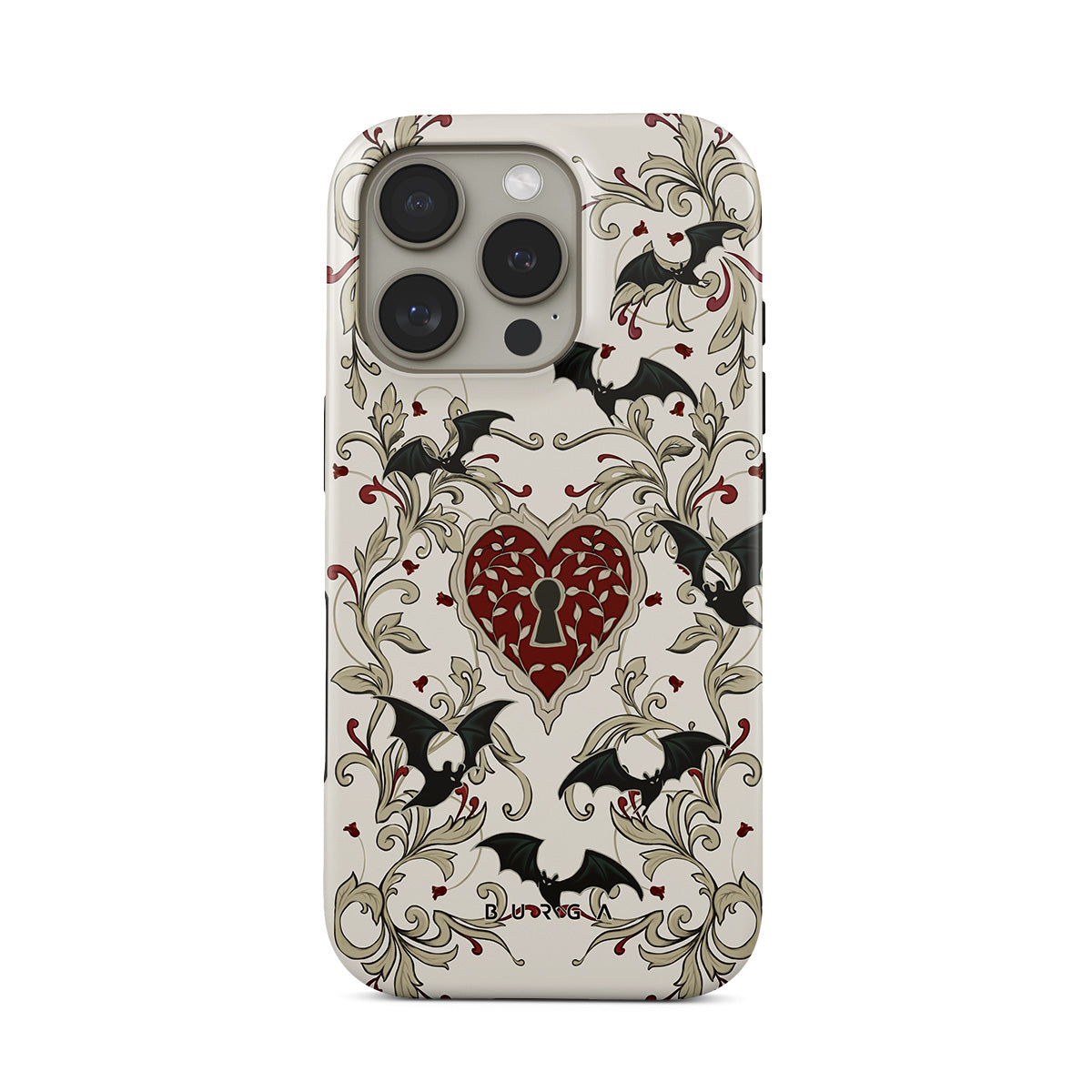 Główne elementy projektu: serce, zamek, nietoperze, motywy gotyckie