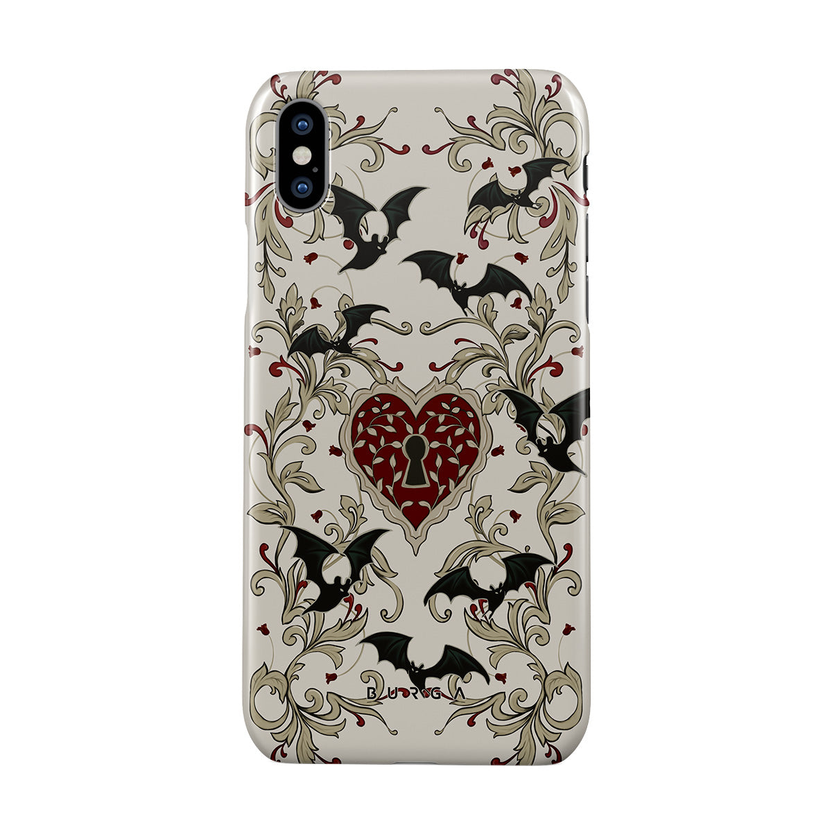 Główne elementy projektu: serce, zamek, nietoperze, motywy gotyckie
