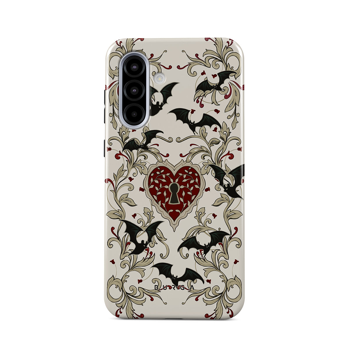 Główne elementy projektu: serce, zamek, nietoperze, motywy gotyckie