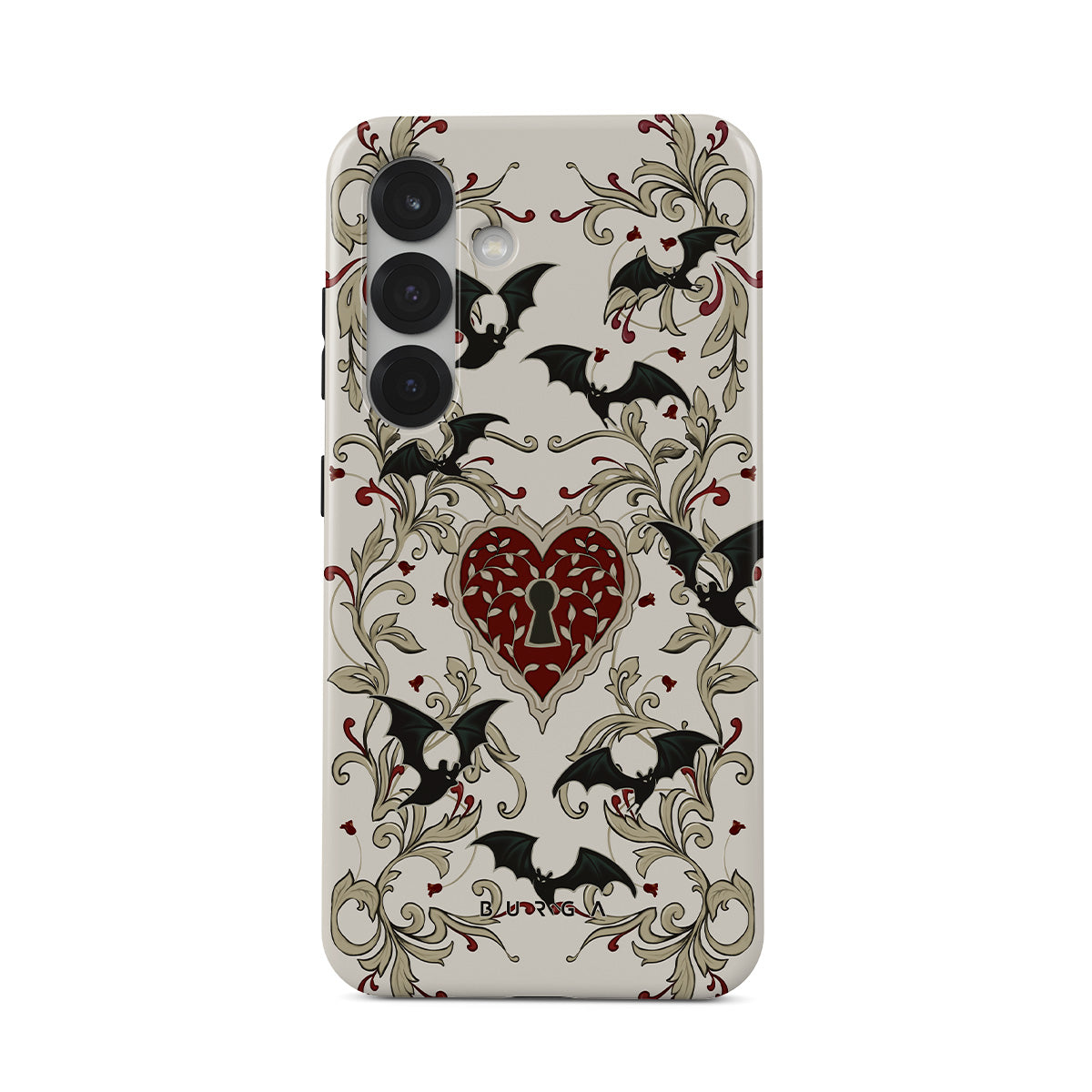 Główne elementy projektu: serce, zamek, nietoperze, motywy gotyckie