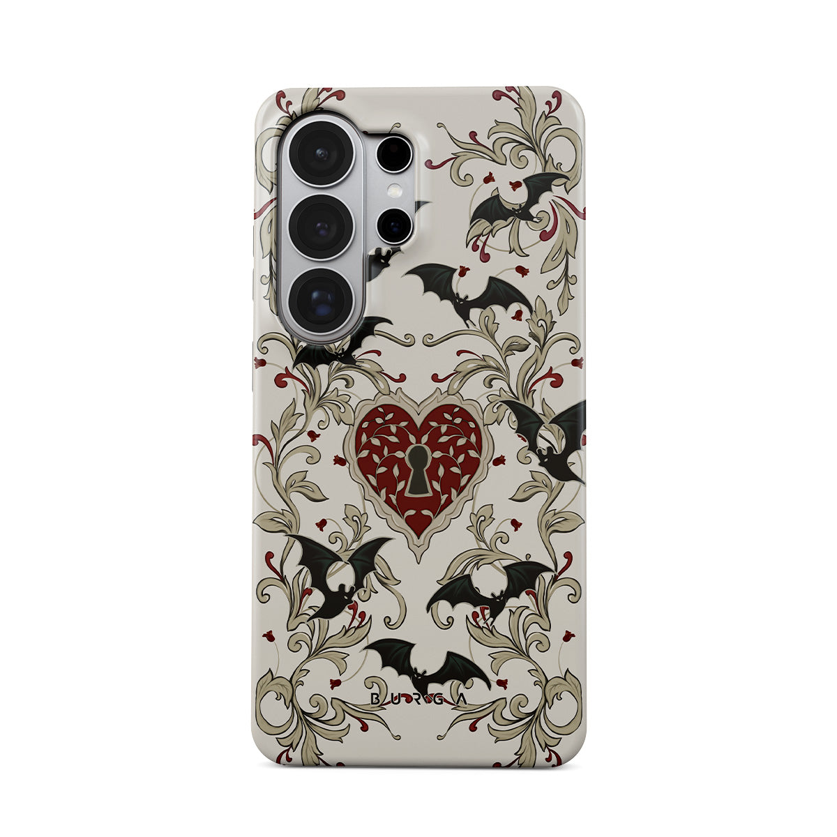 Główne elementy projektu: serce, zamek, nietoperze, motywy gotyckie