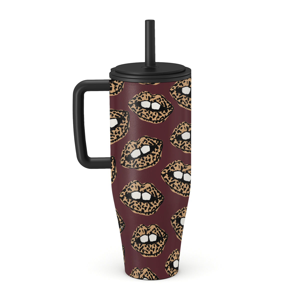 Główne elementy projektu: wzór w panterkę, usta, otwarte usta, umalowane usta.