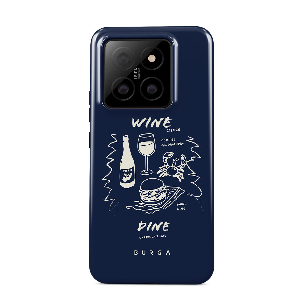 Główne elementy projektu: kieliszki do wina, żywność, jedzenie, minimalistyczne ilustracje, tekst