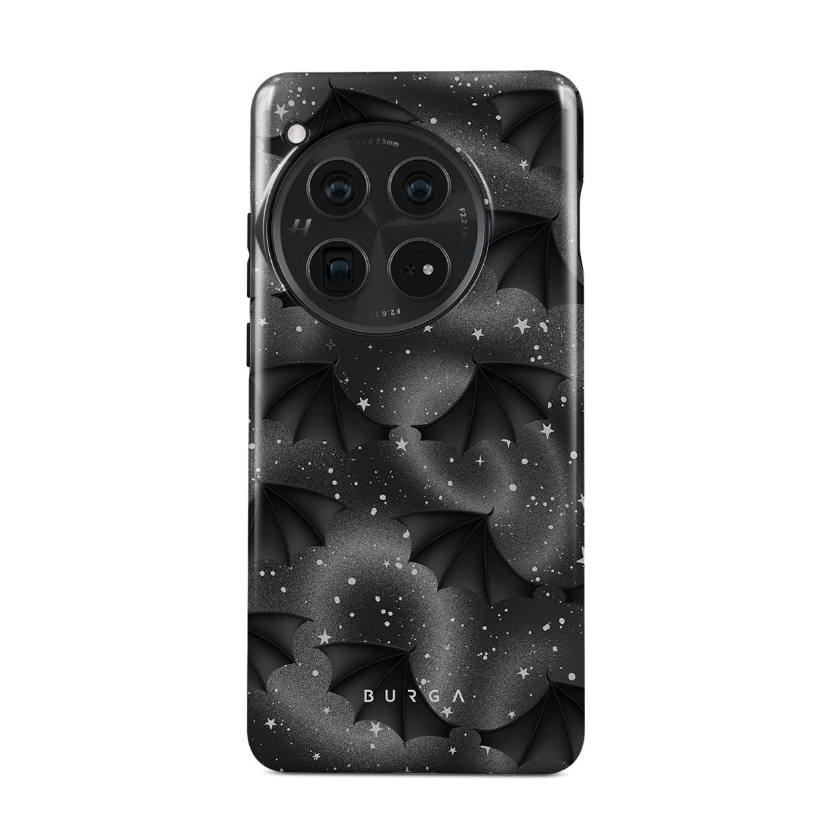 Główne elementy projektu: skrzydła nietoperza, gwiazdy, mistyczne wiry, czarne niebo