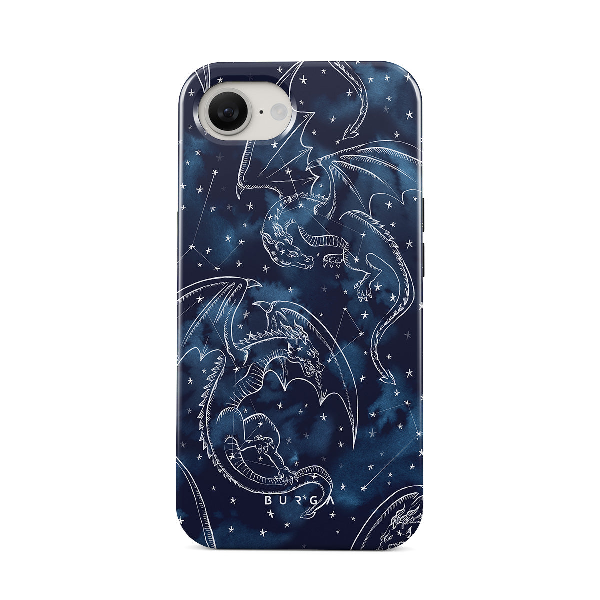 Główne elementy projektu: smoki, gwiazdy, konstelacje, ciemnoniebieskie niebo