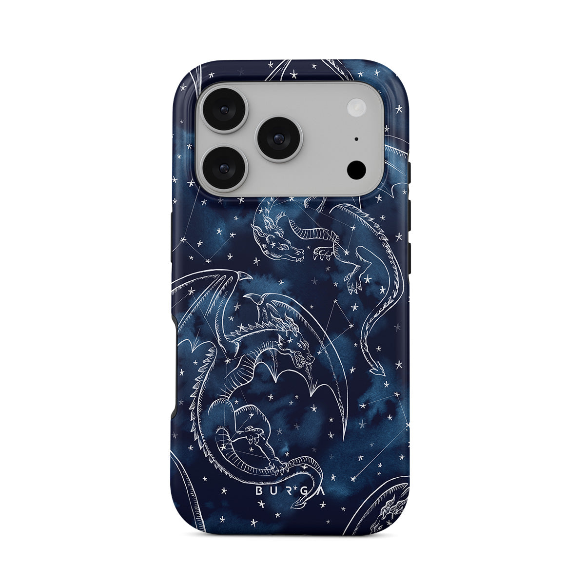 Główne elementy projektu: smoki, gwiazdy, konstelacje, ciemnoniebieskie niebo