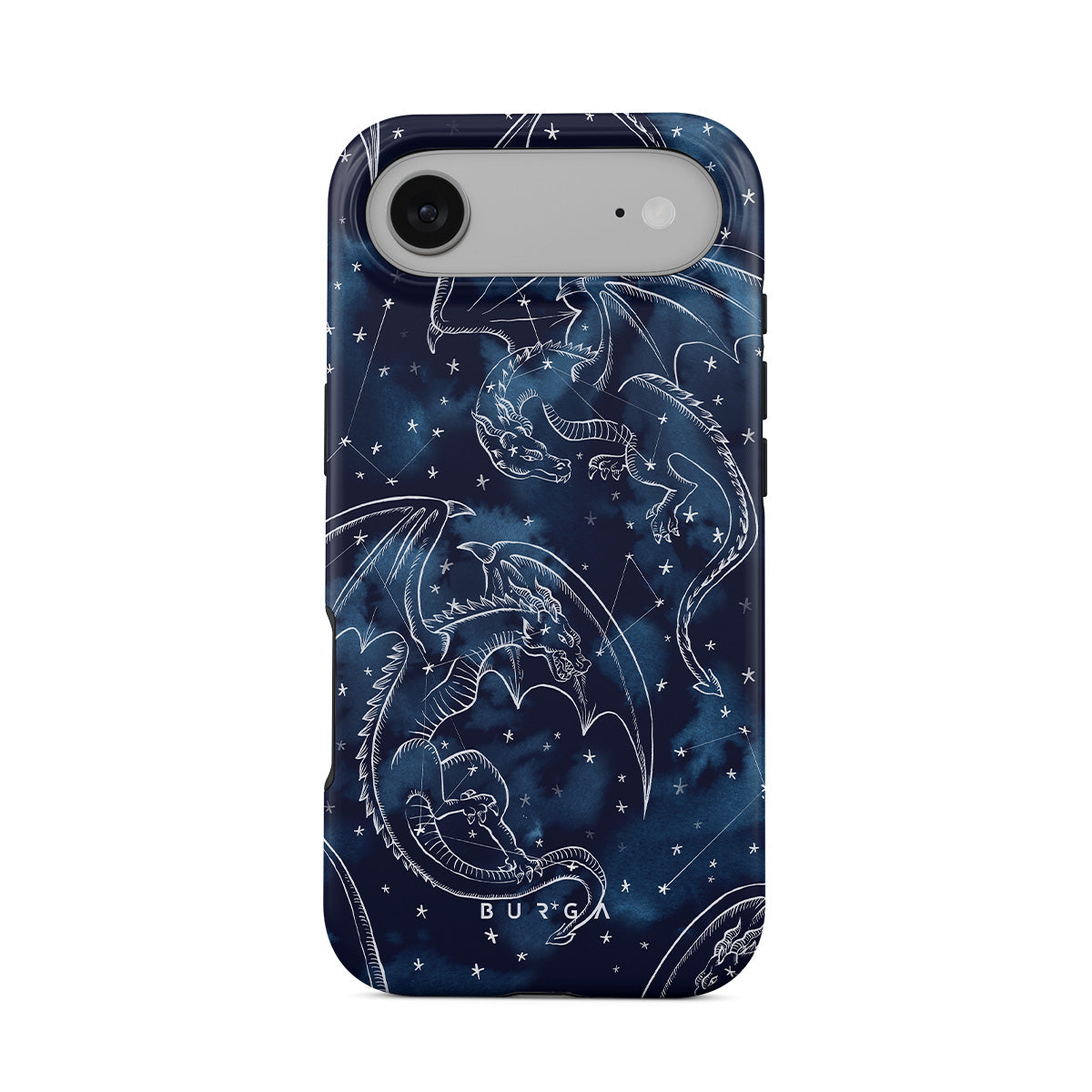 Główne elementy projektu: smoki, gwiazdy, konstelacje, ciemnoniebieskie niebo