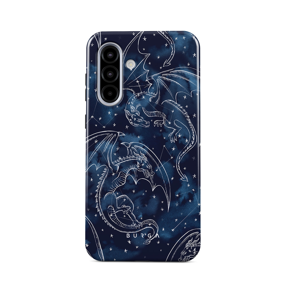 Główne elementy projektu: smoki, gwiazdy, konstelacje, ciemnoniebieskie niebo