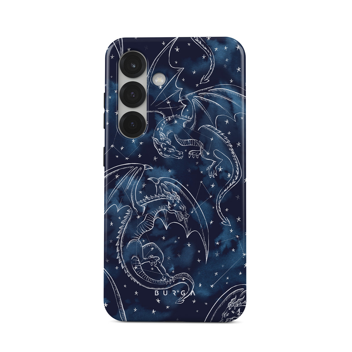 Główne elementy projektu: smoki, gwiazdy, konstelacje, ciemnoniebieskie niebo