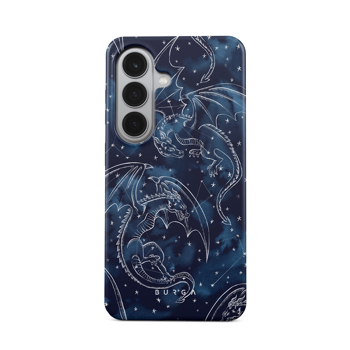 Główne elementy projektu: smoki, gwiazdy, konstelacje, ciemnoniebieskie niebo